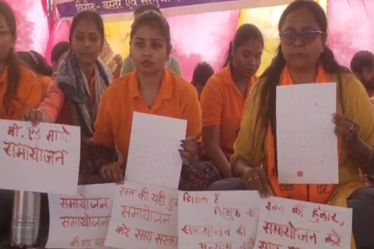 रायपुर। छत्तीसगढ़ में सरकारी नौकरी से निकाले गए बीएड सहायक शिक्षक तूता धरना स्थल पर बैठे हैं। 2,897 बर्खास्त सहायक शिक्षक यहां 8 मार्च से धरने पर बैठे हैं। गुरुवार को आंदोलनकारियों ने खून से मुख्यमंत्री विष्णुदेव साय को पत्र लिखा और सरकार से समायोजन की मांग की है।