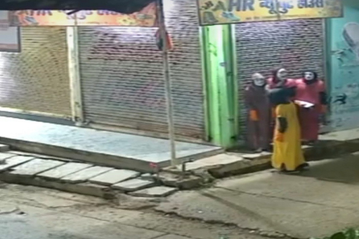 ज्वेलरी शॉप लाखों रुपये के गहने पार, महिलाओं के गाउन और मुखौटा पहनकर पहुंचे चोर…