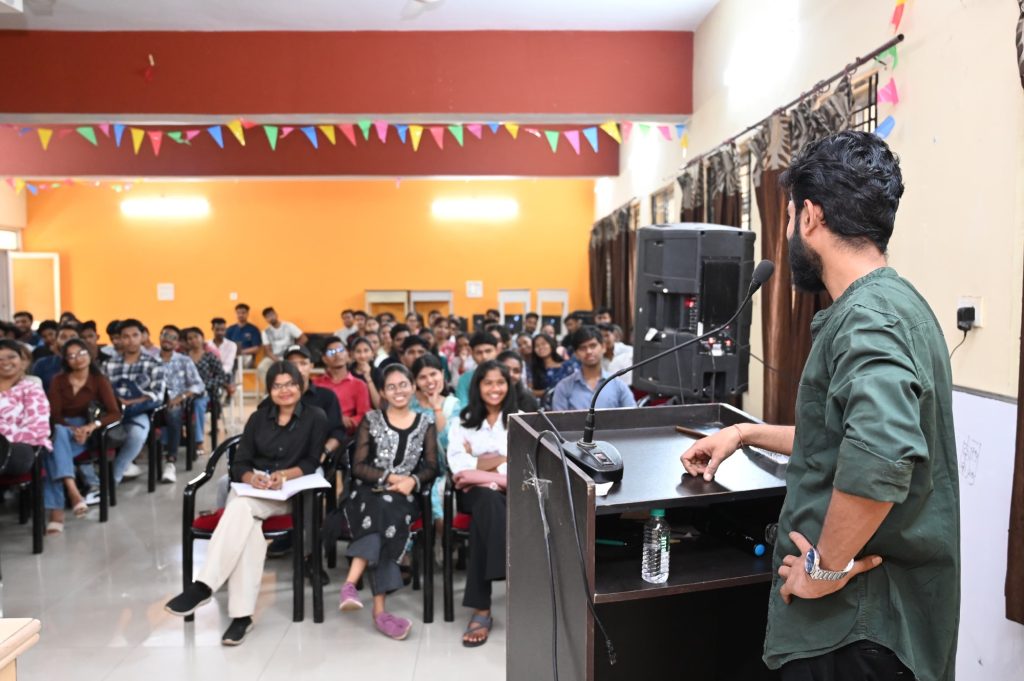 विशेषज्ञों द्वारा सिखाई गई तकनीकी सत्रों में दी उल्टी खोपड़ी के संस्थापक श्री अंकित दुबे ने कहानी की रचना, प्लॉट बनाना तथा पात्र की भूमिका बनाने की तकनीक विस्तार से बताई। उन्होंने समझाया कि कहानी के मूल विचार को कैसे खोजा जाता है, कथानक को किस तरह आकार दिया जाता है और पात्रों की रचना करते समय किन बारीकियों का ध्यान रखा जाता है। इसके साथ ही डायलॉग लिखने की व्यावहारिक तकनीक भी सिखाई, जिसमें संवादों की संक्षिप्तता, प्रभावशीलता और पात्रों की अनुकूलता को मुख्य आधार बताया।