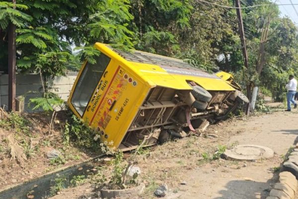 कृष्णा पब्लिक स्कूल की बस हादसे का शिकार, ड्राइवर और कंडक्टर मौके से फरार…