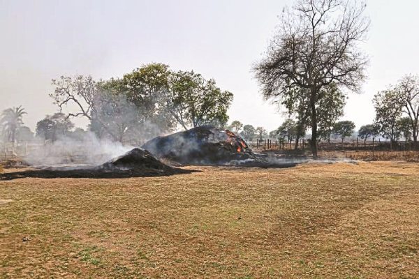 भीषण आगजनी से घरों में रखे पैरावट जलकर खाक, किसानों ने मुआवजे की मांग…