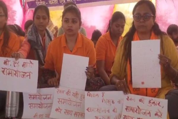 रायपुर। छत्तीसगढ़ में सरकारी नौकरी से निकाले गए बीएड सहायक शिक्षक तूता धरना स्थल पर बैठे हैं। 2,897 बर्खास्त सहायक शिक्षक यहां 8 मार्च से धरने पर बैठे हैं। गुरुवार को आंदोलनकारियों ने खून से मुख्यमंत्री विष्णुदेव साय को पत्र लिखा और सरकार से समायोजन की मांग की है। शिक्षकों का कहना है कि सरकार…
