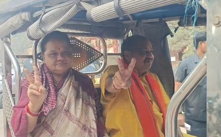 निकाय चुनाव को लेकर आज वोटिंग जारी, पत्नी संग ई रिक्शा में वोट देने पहुंचे विधायक पुरंदर मिश्रा…
